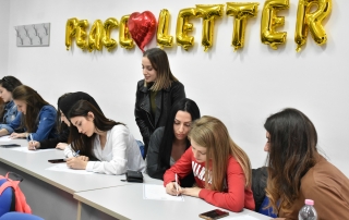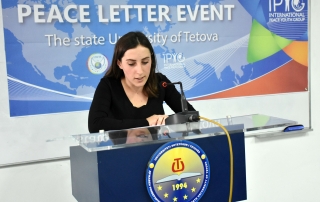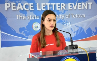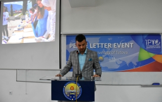 The President of the Student Parliament of University of Tetova, Islam Imeri, said that this event is aimed at encouraging young people to promote peace and through written letters of peace, to convey different messages for the preservation of peace all over the world. “Today, all of us together we wrote short letters of messages of peace, contributing all together for the protection of peace as the most important value for our lives. We, as Albanians, have historically been distinguished as a peace-loving people, it was not by accident that the noble peace prize some years ago was won by one of the greatest figures that honors us as a nation, Saint Theresa, who says: “Peace begins with a smile”, and how dare we not to love it, to preserve it and take care of it”, said Islam Imeri.