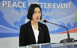 Representative of the International Peace Youth Group, Minwoo Gill, said that this organization this year is working intensively on the project called “Peace Letter”. According to her, young people from all over the world write peace letters to their presidents to ask them to agree to the adoption of the Declaration of Peace and the Cessation of War and we accept them from youth organizations and their members from all countries of the world. “We are here today, at the University of Tetova together with the students, to bring together the hearts of young people in Macedonia and we would like to give you the peace letters written by your students to your president to show their heart and their support for peace. Thank you for joining the Peace Letters event today and I hope we can make a step forward towards world peace”, said Ms. Minwoo Gill.