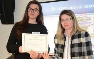 Afterwards, the students participated in the seminar work that took place at the parliamentary institute, in which several topics were discussed: parliamentary history of Macedonia, the organization and functioning of the Assembly, the legal position of the deputies and the fundamental functions of the Parliament and the procedure of passing of laws.