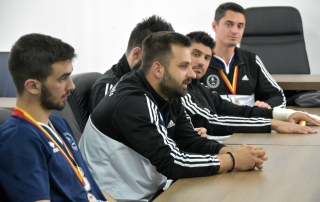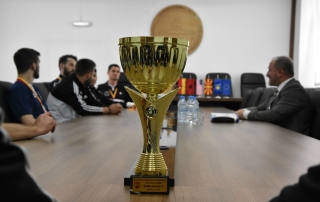 The club captain, Hamza Veseli, in the presence of his teammates, awarded the second place winning cup to the Rector, Prof. Dr. Vullnet Ameti, so that it remains in the showcases of the University of Tetova.