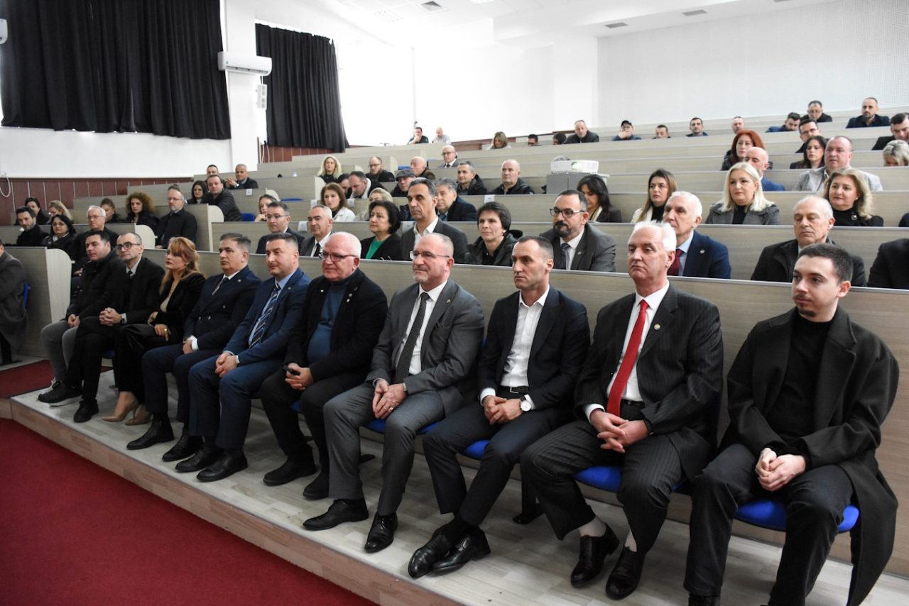 Në vijim te fjalimit të tij Rektori u ndal tek e tashmja e kësaj vatre te dijes. Ai u shpreh se sot, pas tri dekadash nga ato fillime të vështira dhe plot sakrifica, Universiteti i Tetovës qëndron si dëshmi e gjallë se vizioni i themeluesve tanë ishte i drejtë dhe largpamës. Nga auditorët e improvizuar në shtëpitë e qytetarëve tanë, nga kushtet modeste dhe përballjet e shumta, sot kemi ndërtuar një institucion modern, të konsoliduar dhe të respektuar në hapësirën akademike kombëtare dhe rajonale. Ajo që dikur ishte një ëndërr e guximshme për arsim në gjuhën amtare, sot është një realitet i prekshëm me dhjetëra programe studimore, staf akademik të kualifikuar, laboratorë bashkëkohorë, dhe infrastrukturë në përmirësim të vazhdueshëm. “Duke u mbështetur në trashëgiminë e Prof. Dr. Fadil Sulejmanit dhe në sakrificën e brezave, sot Universiteti i Tetovës ka zgjeruar bashkëpunimin me universitete brenda dhe jashtë vendit, ka forcuar kërkimin shkencor dhe ka rritur praninë e tij në projekte ndërkombëtare, duke u shndërruar në një urë lidhëse mes traditës sonë akademike dhe standardeve evropiane të arsimit të lartë. Proceset e digjitalizimit, modernizimit të mësimdhënies dhe përfshirjes së teknologjisë në procesin mësimor nuk janë thjesht reforma teknike, por vazhdimësi e misionit fillestar për ta bërë dijen të qasshme, cilësore dhe në shërbim të shoqërisë. Në themelet e këtij institucioni qëndron kontributi i familjeve që hapën dyert e shtëpive të tyre për mësim, i studentëve të gjeneratave të para, i profesorëve nga vendi, Shqipëria dhe Kosova, si dhe i mërgatës sonë.” – nënvizoi Rektori i Universitetit të Tetovës, Prof. Dr. Jusuf Zejneli. Në përmbyllje të fjalimit ai tha se vizioni ynë është që Universiteti i Tetovës të vazhdojë të jetë qendër e ekselencës akademike, e inovacionit dhe e zhvillimit shoqëror. Veprimtari të tilla solemne na shërbejnë për të reflektuar mbi të kaluarën, për të vlerësuar të tashmen dhe për të ndërtuar me përgjegjësi të ardhmen. Si komunitet akademik dhe si shoqëri, mbetemi të përkushtuar në forcimin e bashkëpunimit, në kultivimin e vlerave demokratike dhe në ngritjen intelektuale, arsimore dhe kulturore të kombit tonë. Këto synime arrihen përmes dijes, ideve të guximshme dhe angazhimit të përhershëm.