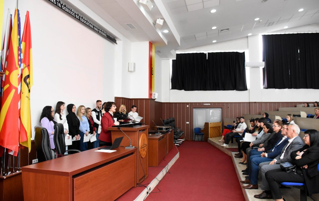 Македонистичката вечер беше заокружена со пригоден коктел во холот на Универзитетот.
