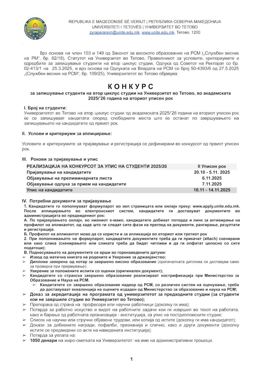 • Конкурс за избор-реизбор на наставници во сите наставно-научни звања