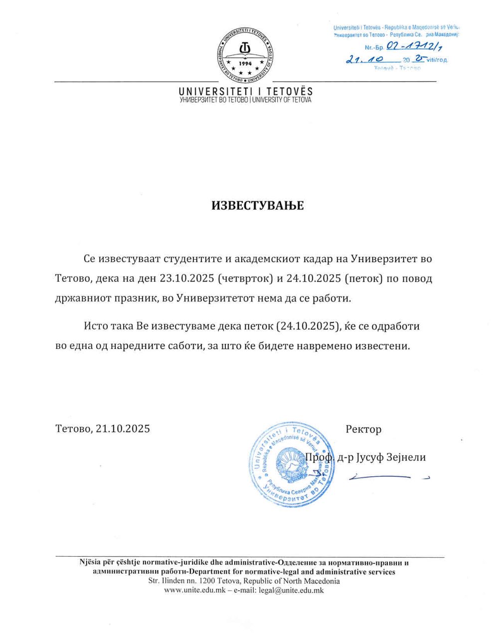 Известување (неработен ден) Besar Huseini2025-10-22T09:53:26+02:00Октомври 22, 2025| Related Posts Известување (неработен ден) Декември 05, 2025 Билтен бр. 254 Декември 01, 2025 Известување (неработен ден) Ноември 21, 2025