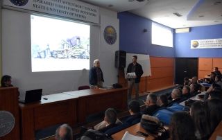 Пред отворањето на изложбата, проф. д-р Роберт Коте, на просториите на Факултетот за применети науки на нашиот универзитет, одржа предавање на кое презентираше некои факти за делата за време на изградбата на музејот на Скендербег во калето на град Круја.