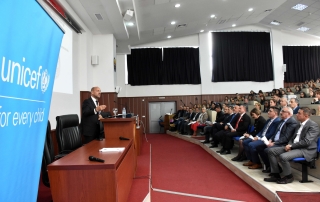 Шефот на УНИЦЕФ во Македонија, г. Бенџамин Перкс, по средбата со раководителите на Универзитетот во Тетово, пред наставниот кадар, студентите и неколку ученици од основното училиште „Фан Ноли” од село Требош, одржа предавање на тема: „Влијанието на насилството и негативните искуства од детството за иднината, сигурноста и долгорочниот развој“. Во текот на предавањето тој претстави некои статистики за насилството врз децата во Западен Балкан. „Во текот на мојот престој остварив средба со ректорот на Универзитетот во Тетово – проф. д-р Вулнет Амети и со некои декани на факултетите со цел да дискутираме за состојбата и заштитата на децата во државата. Моето предавање беше поврзано со насилството. Ние направивме истражување во Западен Балкан околу насилството врз децата. Статистиките покажуваат дека едно од три деца е физички злоупотребено, но во вашата земја, во Република Македонија овој процент е малку повисок. Значи едно од две деца е физички злоупотребено. Ако ги споредуваме балканските држави, физичкото насилство кај децата во Македонија е поголемо отколку во Косово, но е помало во споредба со Албанија. Што се однесува до емотивното непочитување на децата, едно од три деца е запоставено.“ – соопшти г. Бенџамин Перкс.