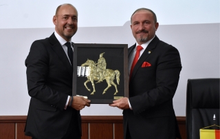 Во знак на благодарност за неговата посета на Универзитетот во Тетово, нашиот ректор, проф. д-р Вулнет Амети, на шефот на УНИЦЕФ во нашата држава, г. Бенџамин Перкс, му додели подарок со портрет на нашиот национален херој Ѓерѓ Кастриот Скендербег.