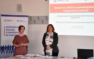 Во рамките на проектот „Унапредување на социјалната кохезија во Република Македонија“ денеска на Универзитетот во Тетово се одржа обука со студентите на Педагошкиот факултет на нашиот Универзитет и студентите на Факултетот за образовни науки при Универзитетот „Гоце Делчев” во Штип. Овој проект е поддржан од УСАИД во Македонија и се спроведува од страна на Search for Common Ground, меѓународна организација со седиште во Вашингтон.