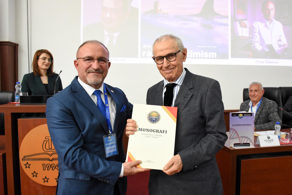 Për kongresin foli edhe Prorektori për Shkencë i Universitetit të Tetovës, Prof. Dr. Vullnet Ameti i cili tha se ky kongres, tashmë i konsoliduar në traditë dhe i njohur për cilësinë e përmbajtjes shkencore, përfaqëson një udhëkryq të frytshëm ndërdisiplinor, ku takohen idetë, ku bashkohen dijet dhe ku bashkëpunimet marrin jetë. “Në këtë tribunë të hapur, mendimi kritik, hulumtimi i avancuar dhe vizioni për të ardhmen gjejnë shprehjen më të lartë. Andaj kjo ngjarje shkencore, dëshmon edhe një herë se misioni ynë universitar lartësohet nga shkenca. Në një kohë kur bota përballet me sfida të paprecedenta – që nga ndryshimet klimatike e deri te transformimet e shpejta teknologjike, nga pandemitë globale e deri te përballjet me pasiguri ekonomike dhe politike – përgjigjja më e qëndrueshme dhe më e fuqishme është ajo që vjen nga dija, nga kërkimi shkencor dhe nga bashkëpunimi ndërinstitucional. Ky kongres është pikërisht një dëshmi e gjallë e këtij përkushtimi kolektiv: për të ndërtuar ura mes disiplinave, për të bashkuar dije dhe për të kontribuuar në krijimin e një shoqërie më koshiente për sfidat që duhet t’i kalojë e t’u gjejë zgjidhje adekuate. Në këtë kontekst, Universiteti i Tetovës është qendër graviteti për kërkimin shkencor, një laborator i ideve të guximshme dhe një ndërmjetës i rëndësishëm i dijes në funksion të zhvillimit të qëndrueshëm të shoqërisë sonë. Misioni dhe vizioni ynë janë të ngulitur në përpjekjen për të çuar përpara standardet akademike, për të thelluar ndërdisiplinaritetin dhe për të forcuar ndërkombëtarizimin, si mjete të domosdoshme për përparim të qëndrueshëm. Diversiteti tematik, ndërdisiplinariteti i theksuar dhe dialogu profesional e bëjnë këtë kongres një ngjarje të pakrahasueshme për nga përmbajtja dhe ndikimi që ka e do të ketë. Në mënyrë të veçantë, kemi nderin e jashtëzakonshëm që në këtë kongres, si folës kryesor, të kemi një prej personaliteteve më të shquara të mjekësisë në rajon – Prof. Dr. Mentor Petrela. Një figurë e rrallë që gërsheton ekselencën shkencore, përkushtimin ndaj arsimit të lartë dhe përvojën e thellë klinike në neurokirurgji, ai përfaqëson atë që mjekësia dhe akademia duhet të jenë në thelbin e tyre: humanizëm i thellë dhe mendim kritik.” – tha mes tjerash Prorektori për Shkencë i Universitetit të Tetovës, Prof. Dr. Vullnet Ameti.
