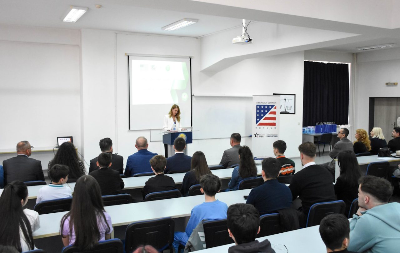 “Universiteti i Tetovës është gjithmonë i hapur për iniciativa të tilla arsimore dhe kulturore që kontribuojnë në ngritjen e cilësisë së arsimit dhe në motivimin e nxënësve për të ndjekur rrugën e dijes. Për ne është një nder që, në bashkëpunim me Këndin Amerikan në Tetovë dhe me Ambasadën e Shteteve të Bashkuara të Amerikës, të mbështesim aktivitete që i afrojnë të rinjtë me mundësi të reja arsimore dhe kulturore. Në këtë rast dua të shpreh mirënjohjen time për të gjithë organizatorët dhe partnerët që kanë kontribuar në realizimin e këtij aktiviteti: Ambasadën e SHBA-së, Këndin Amerikan në Tetovë, Komunën e Tetovës, si dhe të gjithë vullnetarët, mentorët dhe institucionet arsimore që kanë qenë pjesë e këtij procesi. Një falënderim të veçantë meritojnë mësuesit dhe mentorët, të cilët me përkushtim dhe pasion kanë udhëhequr nxënësit drejt këtij suksesi. Puna juaj është themeli mbi të cilin ndërtohen arritjet e gjeneratave të reja. Ndërsa ju, të dashur nxënës, meritoni përgëzimet më të sinqerta. Pjesëmarrja juaj në këtë konkurs tregon guxim, vendosmëri dhe dëshirë për të mësuar. Çdo përpjekje që bëni sot për dijen është një investim i çmuar për të ardhmen tuaj. Shpresoj që kjo përvojë të jetë vetëm një hap i parë në rrugën tuaj drejt sukseseve të mëdha në arsim dhe në jetë. Universiteti i Tetovës gjithmonë do të jetë një derë e hapur për ju dhe për ëndrrat tuaja akademike”, tha Rektori i Universitetit të Tetovës, Prof. Dr. Jusuf Zejneli.