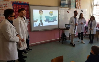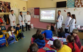 Studentët e Stomatologjisë, sot gjatë paradites, të ndarë në disa grupe, bënë prezantime të shkurtra rreth sëmundjeve të shëndetit oral para nxënësve të disa shkollave, edhe atë: në shkollën fillore komunale “Fan Noli” në fshatin Trebosh të komunës së Zhelinës, si dhe shkollat fillore komunale “Migjeni” dhe “Kirili dhe Metodi” në Tetovë.