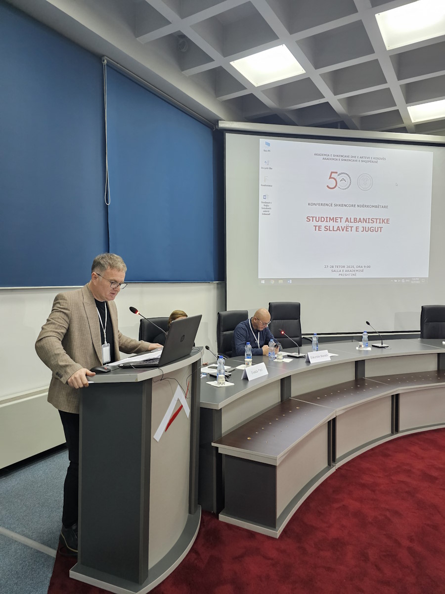 Prof. Dr. Berton Sulejmani, ligjërues në Fakultetin Filologjik të Universitetit të Tetovës, mori pjesë në Konferencën Shkencore Ndërkombëtare “Studimet albanistike te sllavët e jugut”, e organizuar nga Akademia e Shkencave dhe e Arteve e Kosovës (ASHAK) dhe Akademia e Shkencave të Shqipërisë (ASHSH). Punimet e konferencës u zhvilluan në Prishtinë më 27–28 tetor 2025, duke bashkuar studiues të njohur nga Kosova, Shqipëria, Maqedonia e Veriut, Bullgaria, Serbia, Kroacia, Rusia, Gjermania etj.