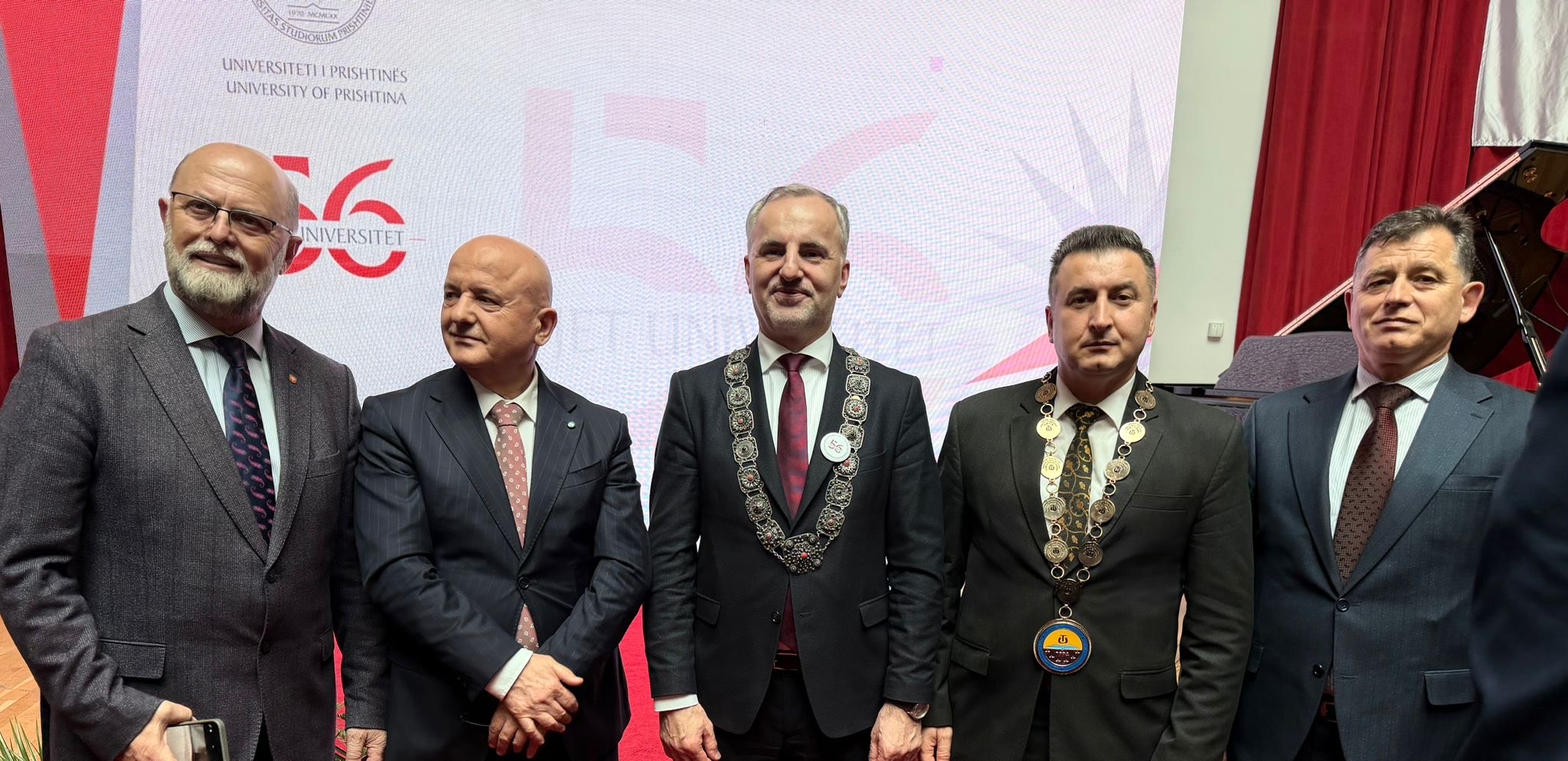 Rektori i Universitetit të Tetovës, Prof. Dr. Jusuf Zejneli, sot, më 13 shkurt 2026, mori pjesë në ceremoninë solemne të 56-vjetorit të themelimit të Universitetit të Prishtinës.