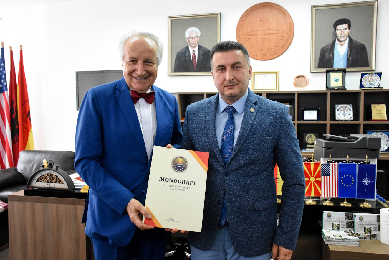 Rektori i Universitetit të Tetovës Prof. Dr. Jusuf Zejneli i shoqëruar nga Kryetari i Senatit, Prof. Dr. Kenan Ferati dhe Dekani i Fakultetit të Shkencave të Mjekësisë Prof. Dr. Nevzat Elezi pritën në takim Kryetarin e Kolegjit Pan-Shqiptar të Kirurgëve, z. Rifat Latifi bashkë me ekipin e tij.