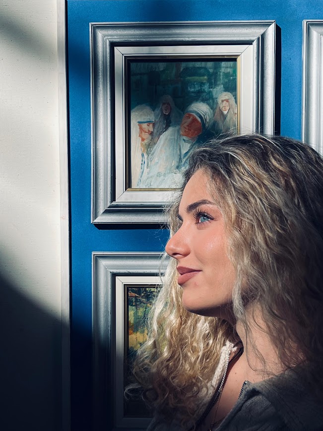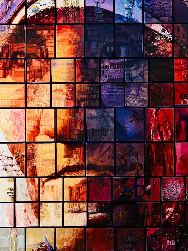 Në veçanti spikatnin dy piktura monumentale të portretit të Nënë Terezës, të cilat ruajnë dorëshkrimin e njohur të artistit përmes formave konceptuale dhe frymës postmoderne që e karakterizon krijimtarinë e tij.