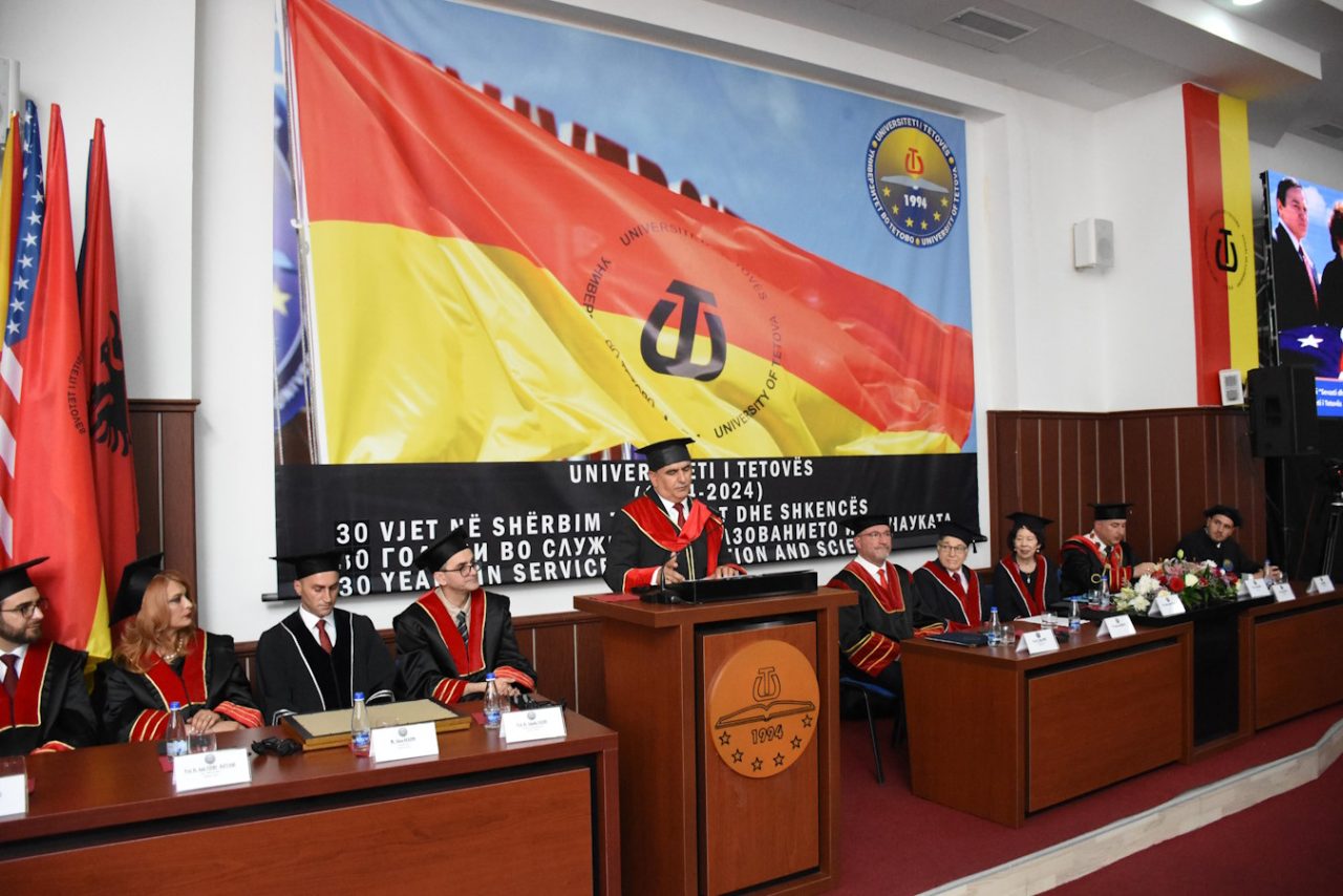 Në përputhje me procedurën e ndarjes së titujve Doctor Honoris Causa, vendimet përkatëse i lexoi Kryetari i Senatit të Universitetit të Tetovës, Prof. Dr. Kenan Ferati.