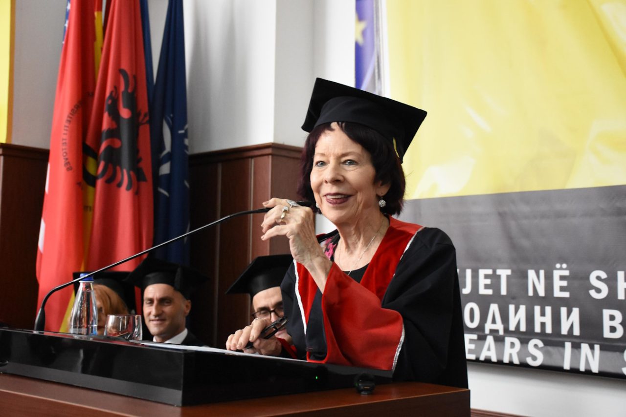 “Historia e Universitetit tonë është e lidhur ngushtë me emrin e z. DioGuardi. Sa herë do të flitet e do të shkruhet për Universitetin e Tetovës, do të përmendet me respekt e admirim emri dhe kontributi i z. DioGuardi. Stafi drejtues, profesorët dhe studentët i janë mirënjohës për mbështetjen që i dha Universitetit tonë. Me të njëjtin respekt dhe nderim do të përmendet edhe znj. Shirley Cloyes DioGuardi – eksperte për politikën e brendshme dhe ndërkombëtare amerikane, e cila shërbeu si këshilltare për çështjet e Ballkanit në Lidhjen Qytetare Shqiptaro-Amerikane. Zonja Shirley Cloyes DioGuardi nëpërmjet artikujve të thelluar mbi problemet e rajonit tonë dha kontribut të çmuar për ndërkombëtarizimin e çështjes shqiptare dhe për vendosjen e paqes, stabilitetit dhe demokratizimit të shoqërive të rajonit. Me përkushtimin dhe dijen e thellë, ajo arriti ta paraqiste pamjen reale të asaj që ndodhte gjatë luftës së Kosovës.”- theksoi Rektori i UT-së.