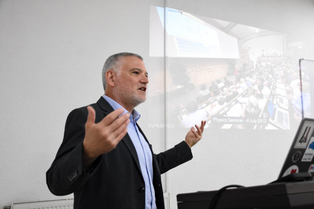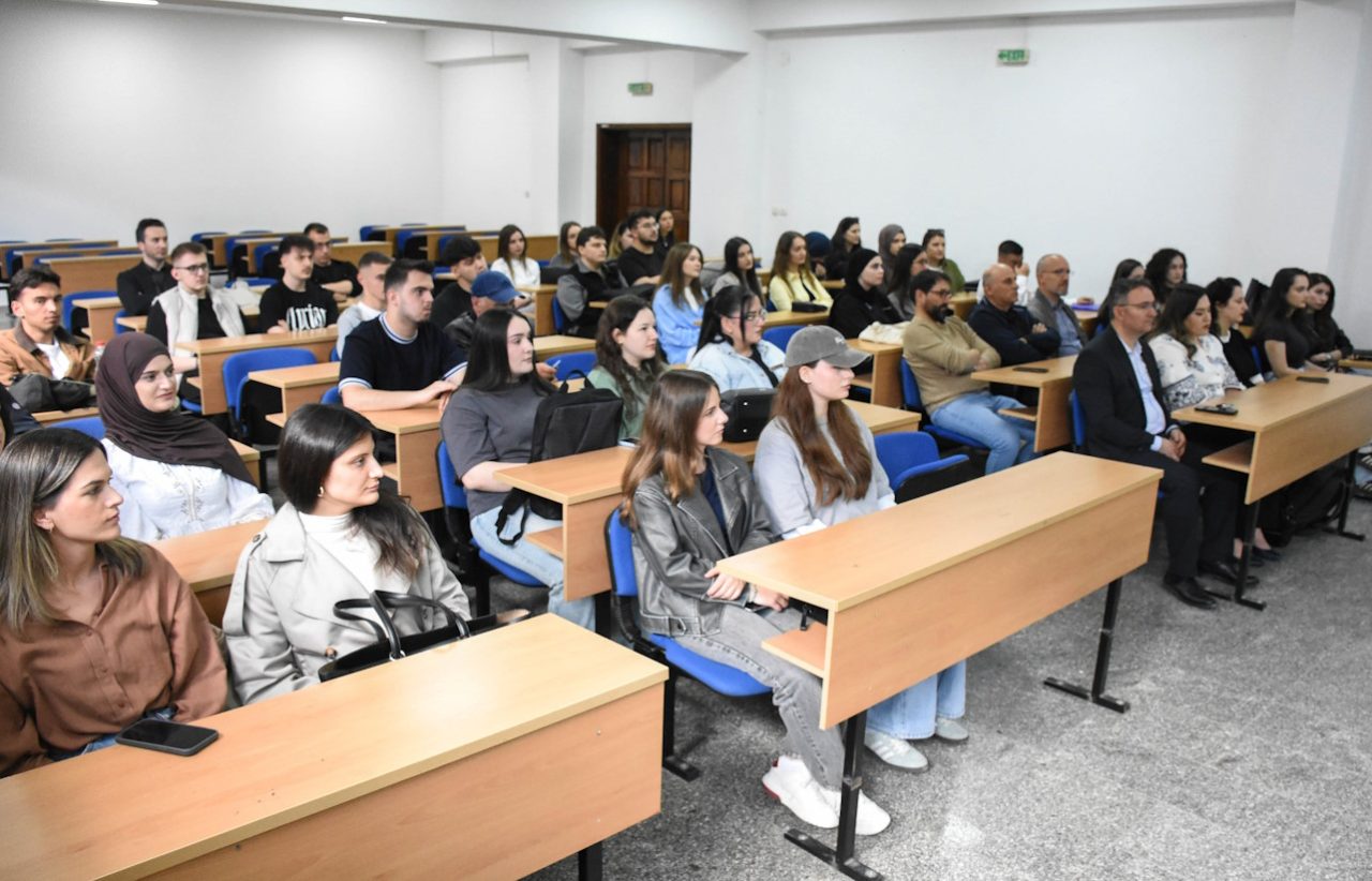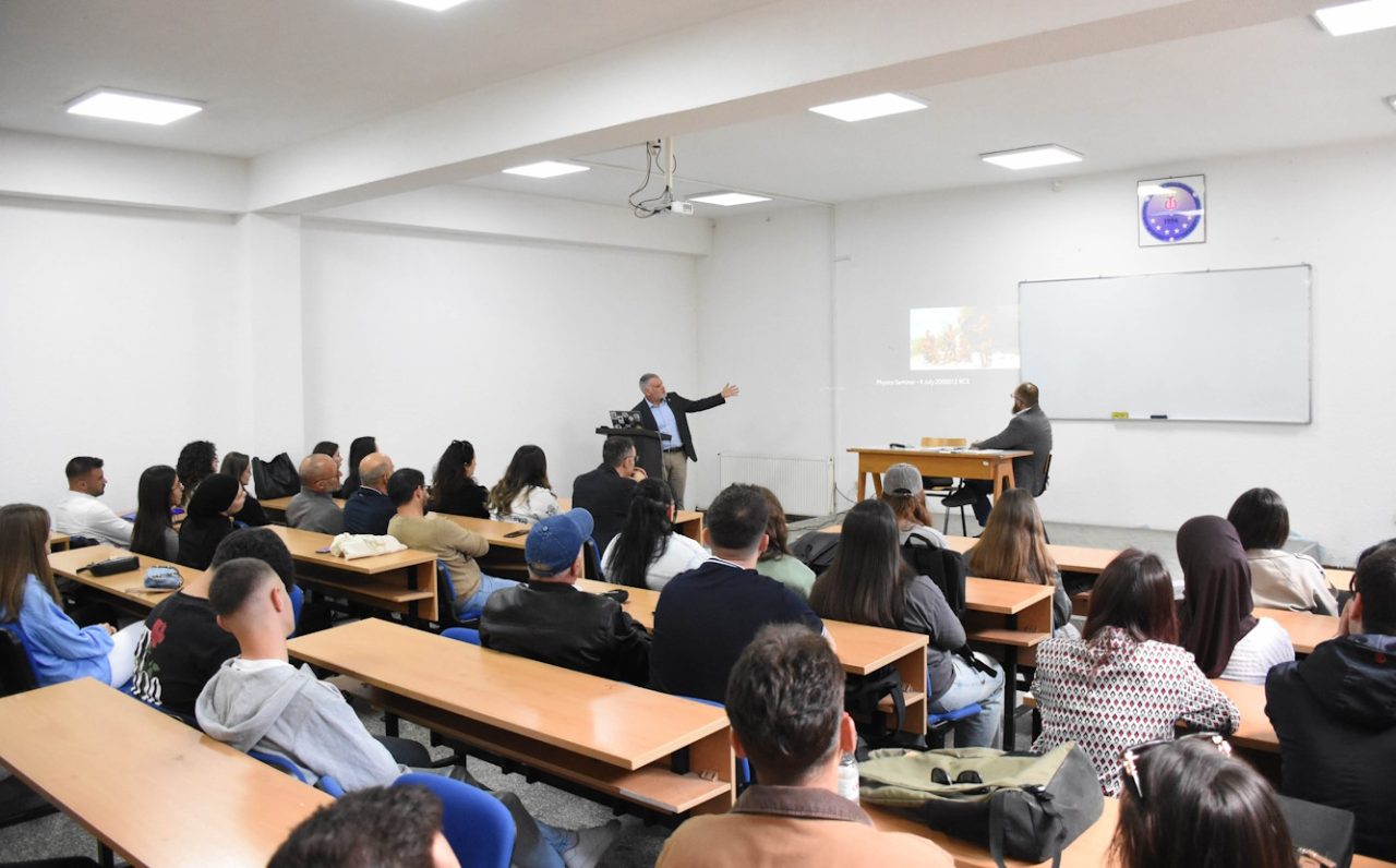 Pas takimit, Prof. Dr. Steven Goldfarb mbajti një ligjëratë motivuese me studentët e FSHMN-së, me temën: “Përfshirja e botës nëpërmjet kërkimeve të LHC-së”. Ai u fokusua në kontributin e LHC-së (Large Hadron Collider) në zbulimet më të rëndësishme shkencore, si dhe në ndikimin e teknologjive të zhvilluara nga këto kërkime në jetën e përditshme dhe në kuptimin e origjinës së universit. Po ashtu, ai i inkurajoi studentët që të ndjekin rrugën e kërkimit shkencor, të zhvillojnë ide inovative dhe të kontribuojnë në projekte me shtrirje globale dhe me ndikim të drejtpërdrejtë në zhvillimin ekonomik dhe teknologjik të shoqërisë.